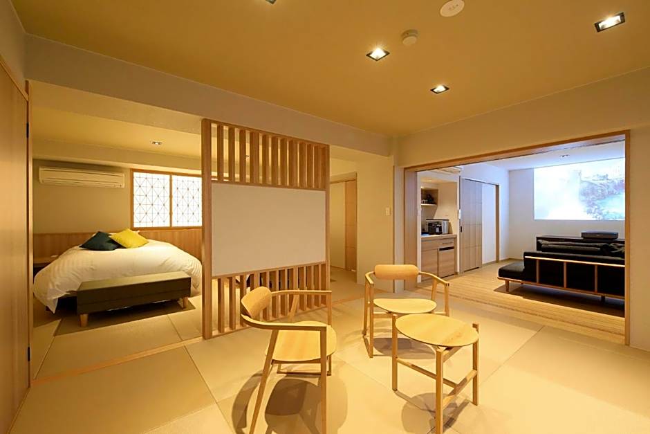 The family room provides air conditioning, tatami, as well as a private bathroom featuring a bath and a shower. The family room features a wardrobe, a safe deposit box, an electric kettle, yukata and a flat-screen TV. The unit offers 2 futons.